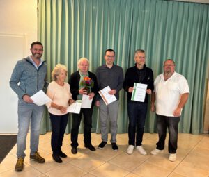 Dann überreichte er gemeinsam mit dem 2. Vorsitzenden Hans-Martin Friedrich den Jubilaren ihre jeweilige Ehrennadel und Urkunde: