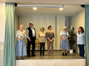 Im Anschluss an die Ehrungen gingen wir zum gemütlichen Kaffee- und Kuchenbuffet über. Unsere Theatergruppe „s’ensemble“ brachte dann den Saal mit schwäbischen Sketchen, Erzählungen und Witzen zum Lachen und sorgte für eine supergute Stimmung. Eine wirkliche tolle Leistung der Akteure, die von der Vorstandschaft gewürdigt und dem anwesenden Publikum lautstark applaudiert wurde. Mit gemütlichen Gesprächen ging der gelungene Nachmittag dann voll zu Ende.